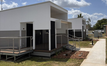 Forge Solutions engaged Moddex to supply Ezibilt™ ramps, stairs and platforms for six new modular staff accommodation units at Biloela Hospital, provided by Saltair Modular, to replace older quarters. Delivered using MMC (Modern Methods of Construction) and funded by the Hospital Rescue Plan, the redevelopment provides modern, comfortable housing for healthcare workers and supports staff attraction and retention in the Biloela region.