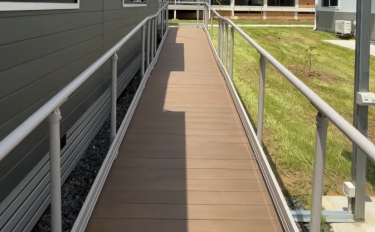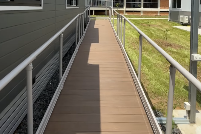 Moddex supplied 140sqm of pre-engineered ramp, stair and platform systems, both straight ramps and switchback configurations, that were installed onto pre-poured concrete pads. 282 lineal metres of Assistrail® handrail in a Dune powder coated finish, along with Flexalyte kerbrail, were integrated to meet safety and accessibility requirements. The modular nature of Ezibilt™ meant it was easier to incorporate with Saltair Modular’s prefabricated buildings and Forge Solutions’ site works.