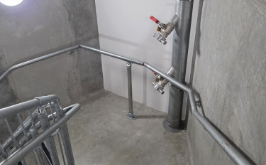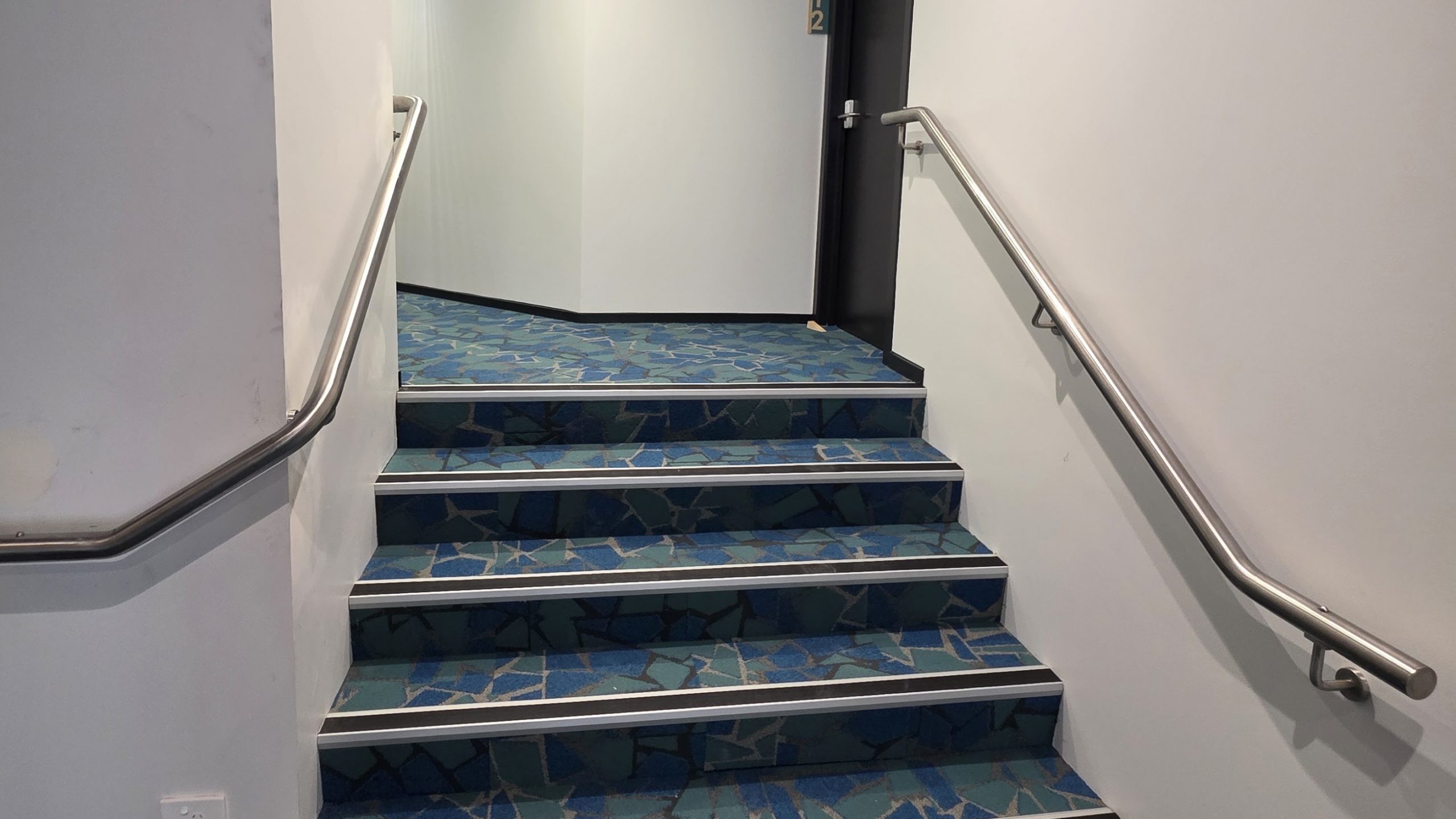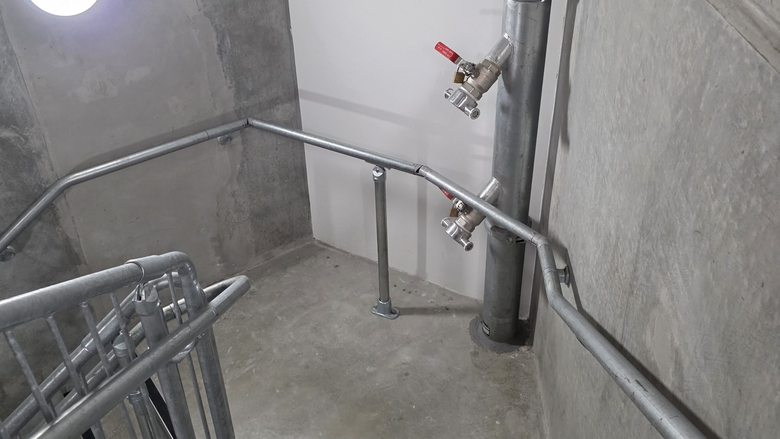 An additional challenge was ensuring the handrail could flow smoothly around fixed fire hydrants while maintaining continuous flow, accessibility, and compliance with fire egress standards, all without disrupting other trades.