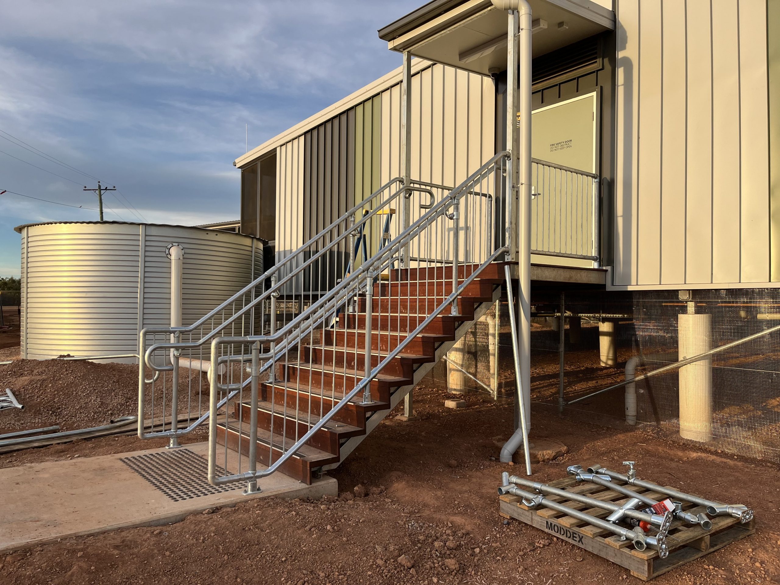 Moddex supplied over 300 lineal metres of pre-engineered, top mounted AR10 Assistrail® handrail, CB40 and CB45 Conectabal® commercial balustrade systems, tailored to suit the project’s modular design. Each section was manufactured and quality checked offsite, then delivered in kit form for rapid assembly with no onsite welding or cutting. Installed across six stairways, four ramps and multiple deck platforms, all products were HDG finish suited to North Queensland’s humid climate. By using prefabricated systems, the project team minimised time onsite and streamlined installation, contributing to the successful completion within six months.