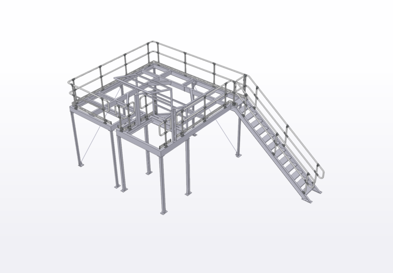 Moddex was engaged to design and supply a compliant handrail and guarding solution for a new mezzanine and process platform installation delivered by Taurus Engineering. Our scope focused on engineering a coordinated handrail kit set to integrate with the fabricated steel structure and access stairs.